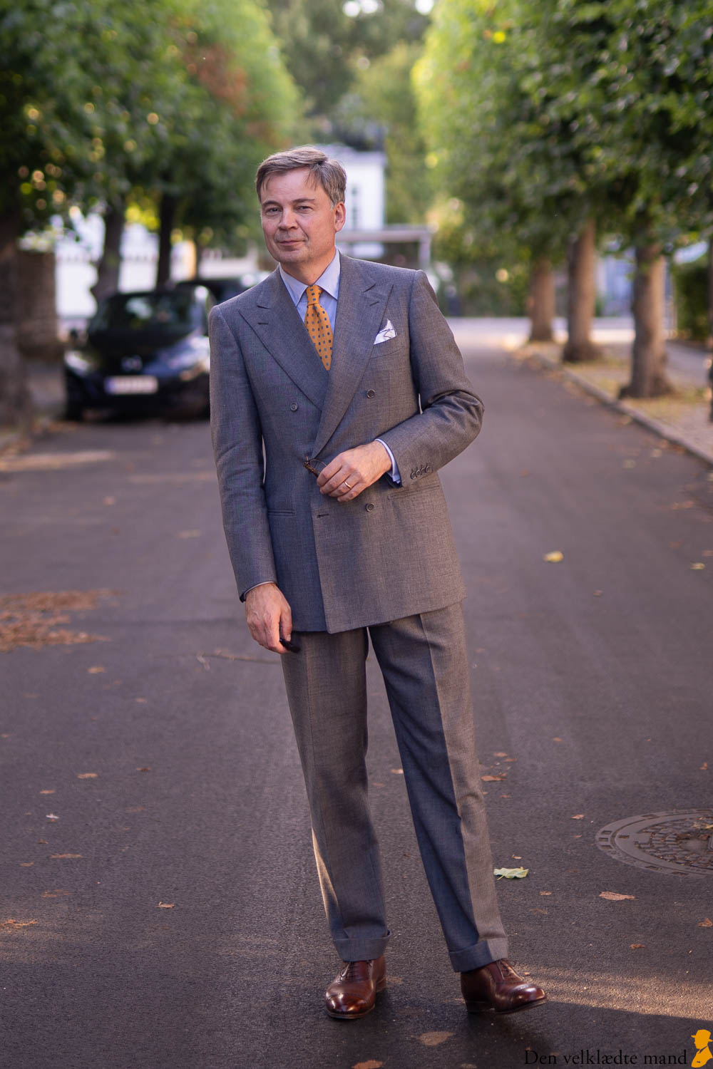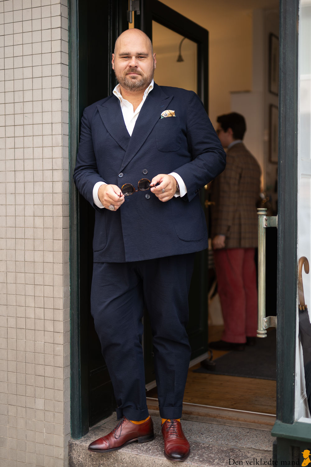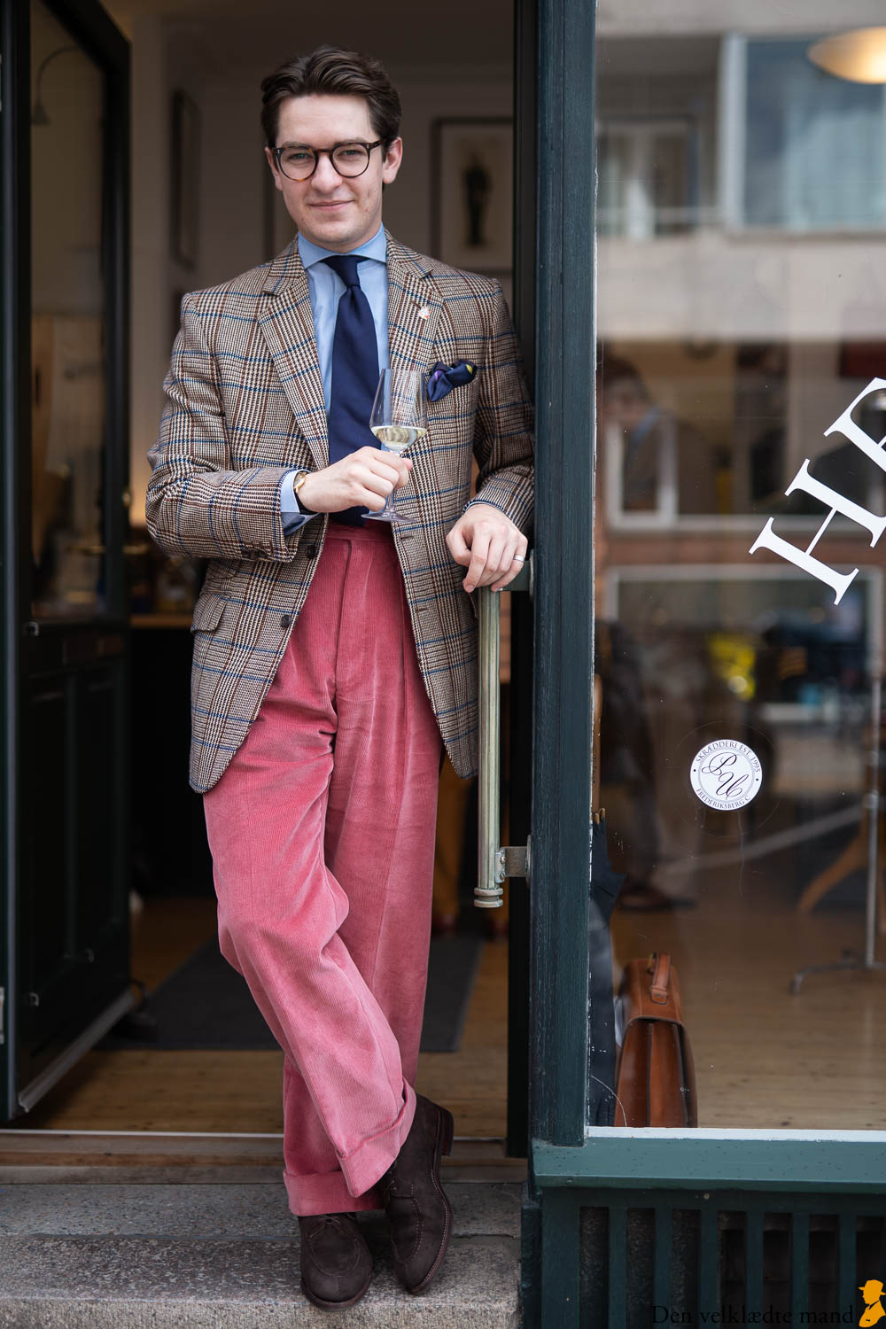 Heldigvis tog 12 herrer mod invitationen. Selv om man båder byder på udsøgt vin (Johann Geil Erben Scheurebe Trocken 2021) og cigar (Macanudo Inspirado), kan det være svært at skabe en stor forsamling. Mange er allerede draget på ferie eller har andre og vigtigere ærinder, før de skal af sted. Og så er der alle dem, der gerne vil med, men er nervøse for, om de nu kan leve op til Den velklædte mands standarder. Den er jeg flere gange stødt på, til trods for jeg jævnligt forsøger at afdramatisere stilforventninger.