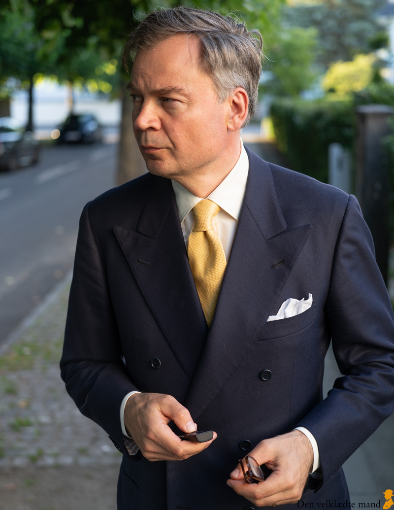Ja! tænkte jeg, da jeg så skjorten med et marineblåt jakkesæt, gult slips og hvidt lommetørklæde i brystlommen.