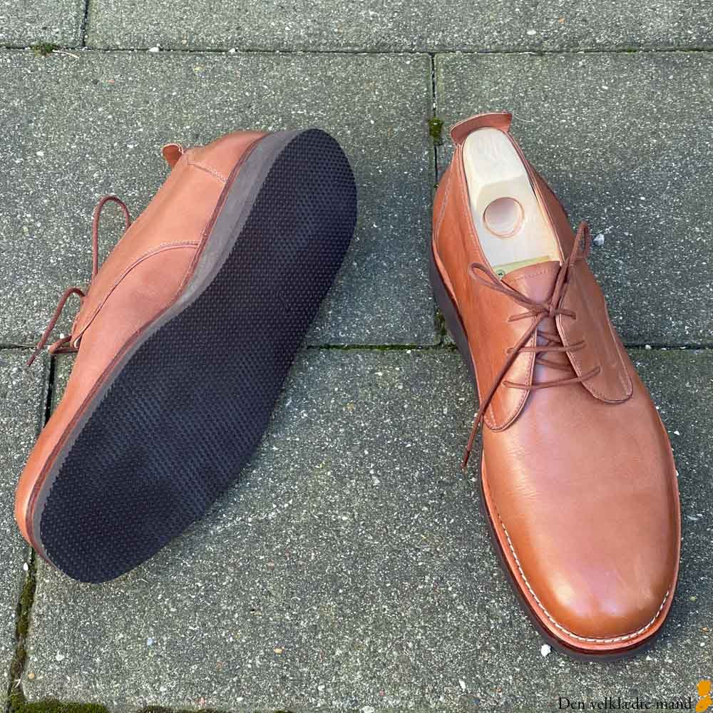 De ligner lidt mine bløde derbysko fra Ganter, som netop også har flade (dog limede) gummisåler, som er gode at gå i, og som jeg kan gå med en hel dag – det er ellers for mig kun muligt med sko efter mål.