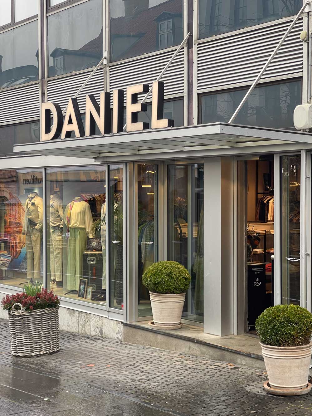 Mens de tre-fire andre butikker, der forhandler fin konfektion på Sjælland, befinder sig i København, ligger Daniel en halv times kørsel nord for hovedstaden, på gågaden i Hørsholm. Selv om der er et grundlag for at sælge fin konfektion på de kanter, er det alligevel bemærkelsesværdigt, at det er lykkedes butikken at bevare et bredt, kostbart udbud af herretøj så langt fra Kgs. Nytorv. Foruden Belvest har Daniel også i perioder ført Kiton, Brioni og Zegna. I dag består udbuddet af konfektion af blandt andet Caruso, Lardini, Stile Latino, Borrelli, foruden Belvest, flagskibet.