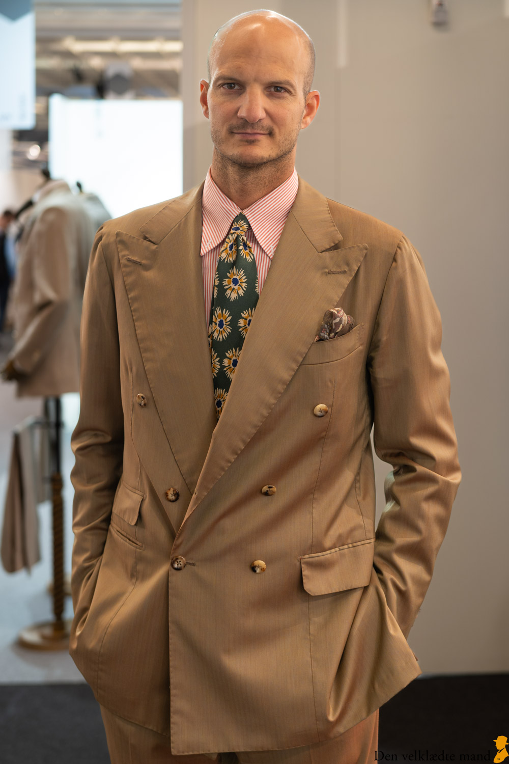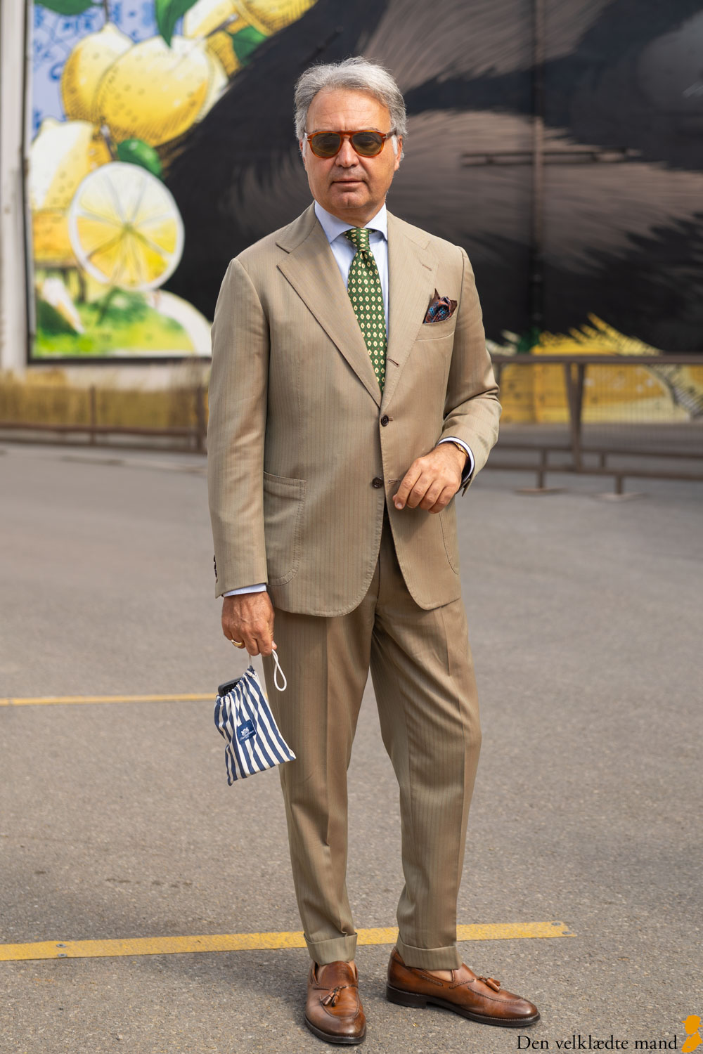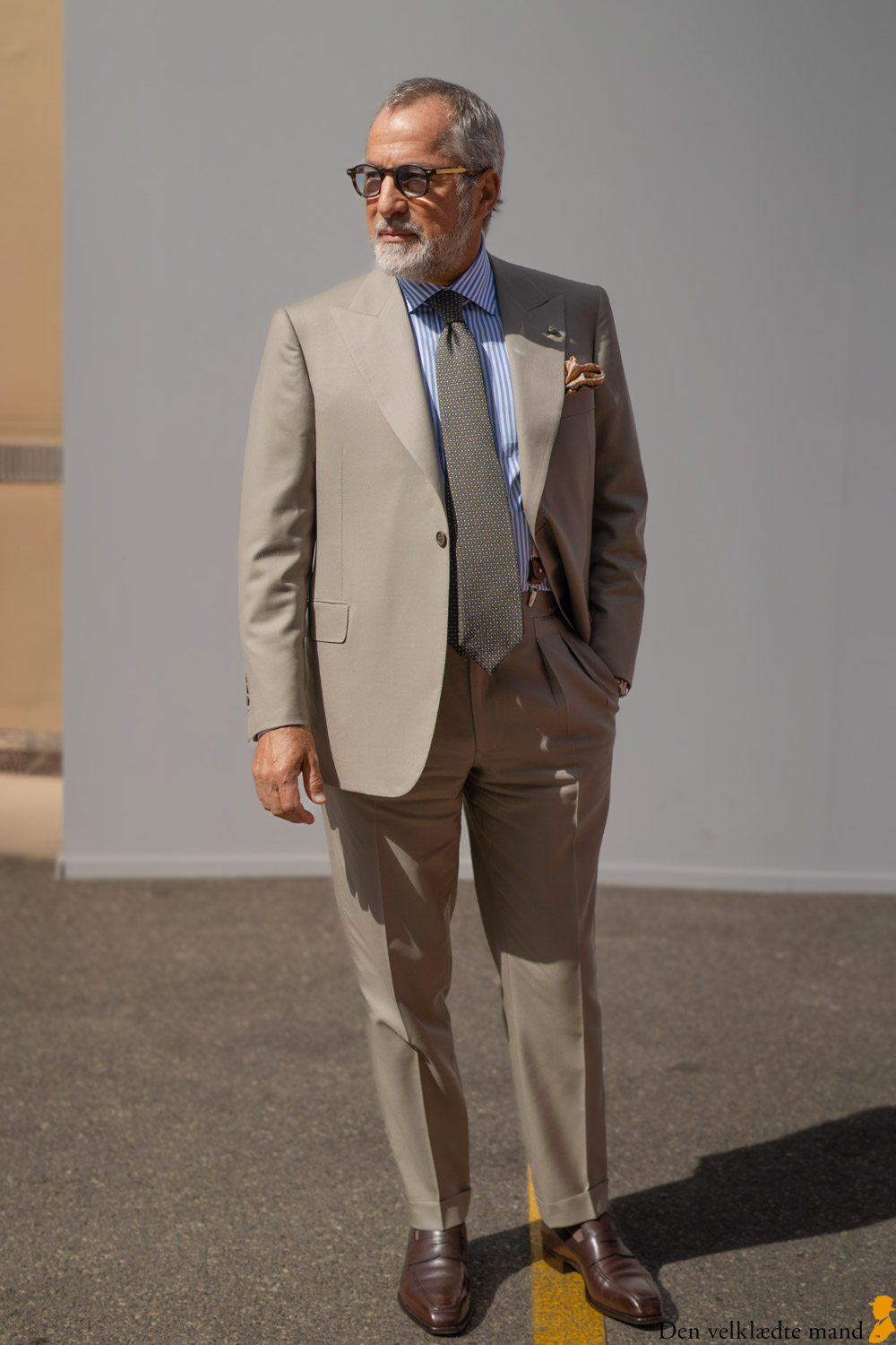 Men slipset kan også være grønt, hvis det lysebrune jakkesæt har en grøn tone.