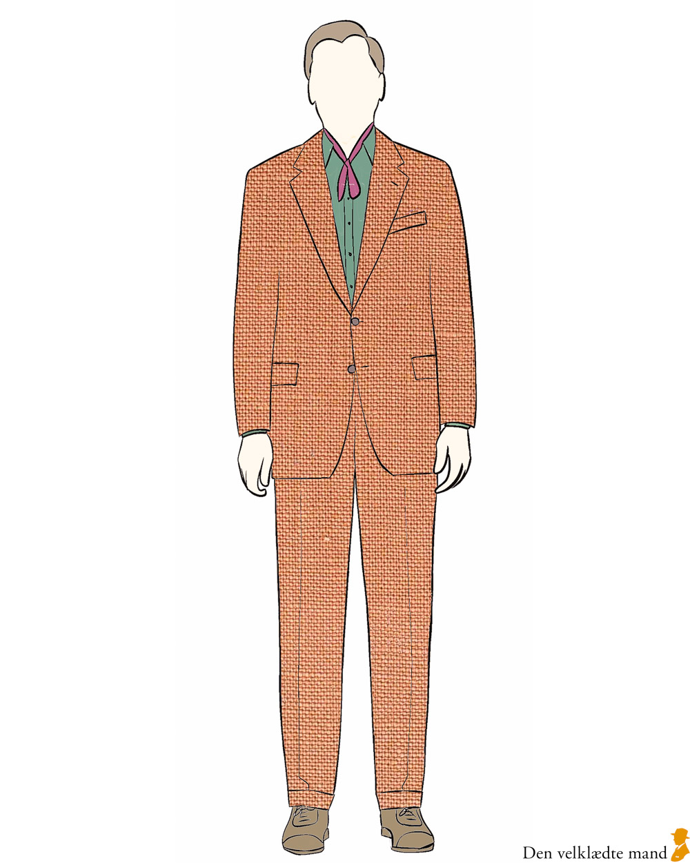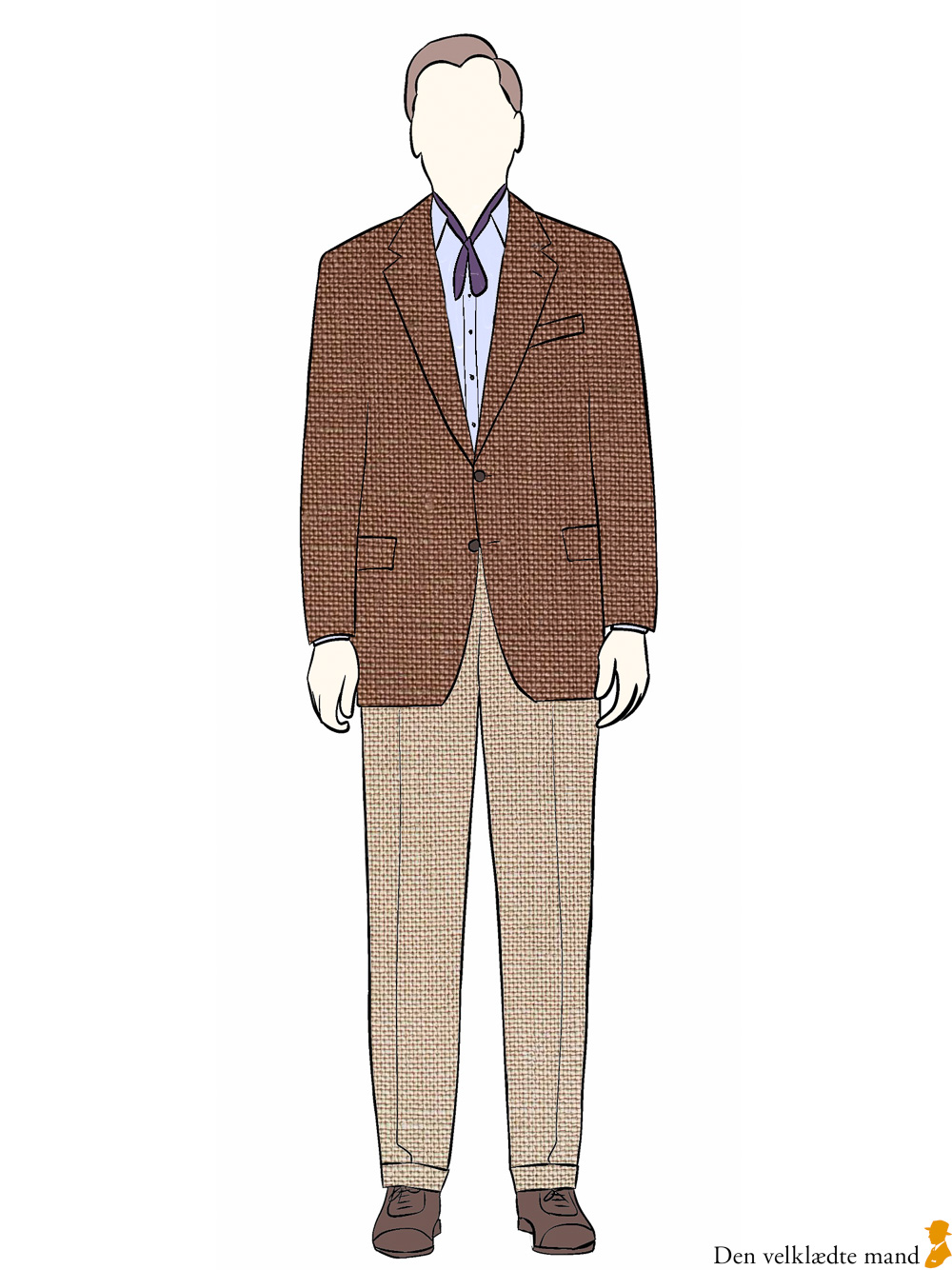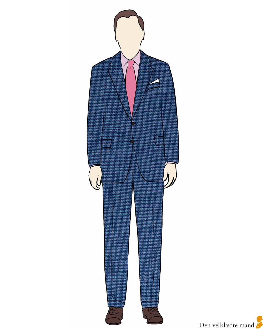 Teksturerne fremtræder mere grovkornede og større i jakke og bukser, end de vil se ud i virkeligheden.