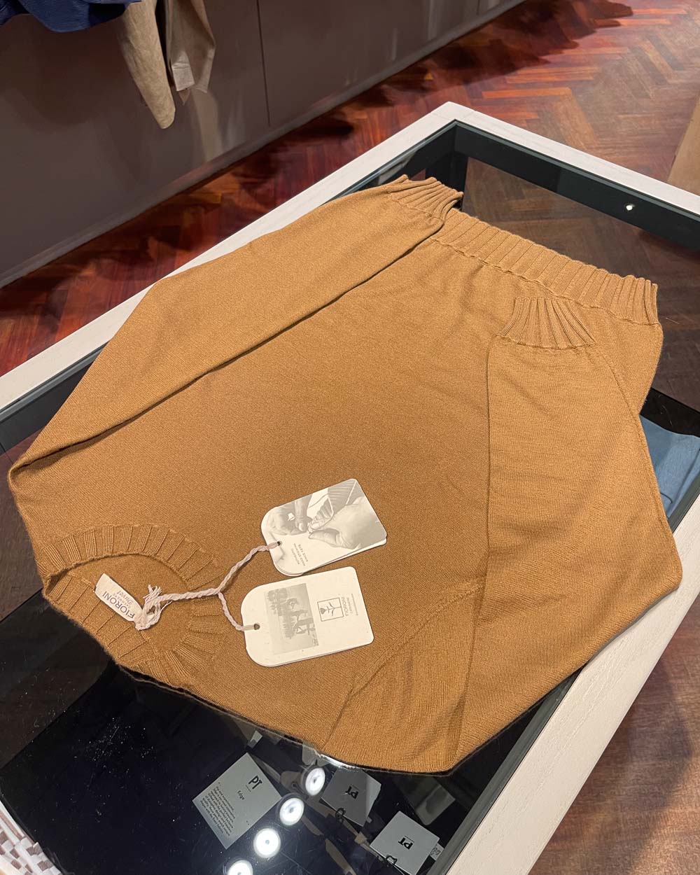 Butikkens fineste strik er dog den fra Fioroni. Jeg tror ikke, jeg har set mage i København. Velstrikket cashmere, ærmer påketlet, design efter bogen. 7.500 kr.