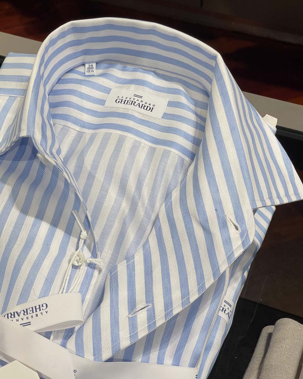Skjorterne følger trop. Jeg så blandt andet en model med one piece-collar fra Gheradi. Dette sommerlige kravedesign støder man sjældent på i København.