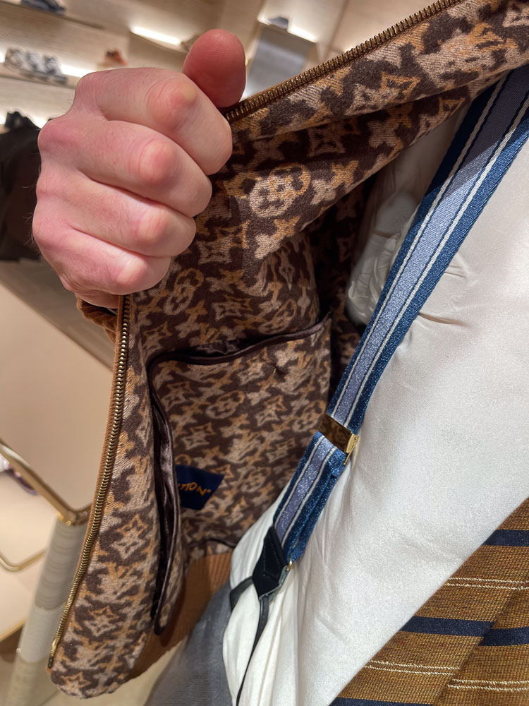 I samme ombæring afskrækkede jakken, fordi Louis Vuitton hæmningsløst havde foret jakken med deres logomønster.
