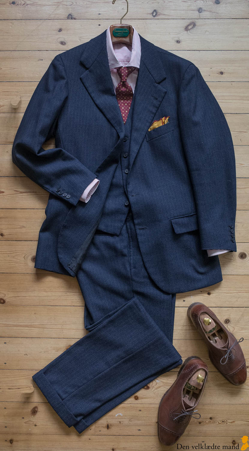 Jeg ønskede også at levendegøre kombinationen over dem alle inden for forretningslivet: marineblåt jakkesæt, lyseblå skjorte, mellemblåt slips og sorte Oxfordsko.
