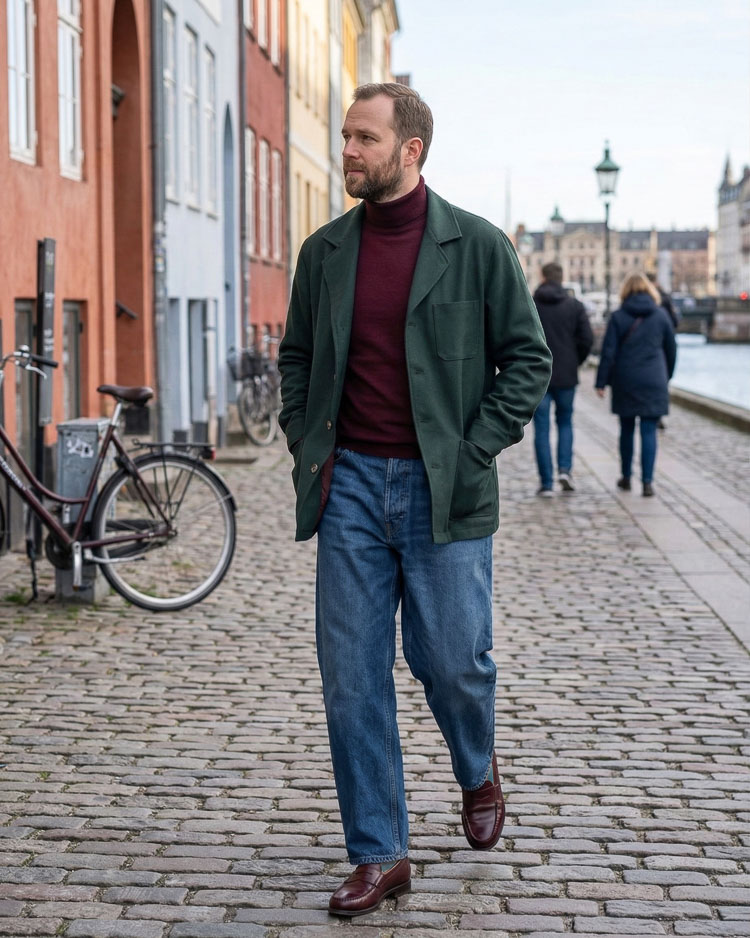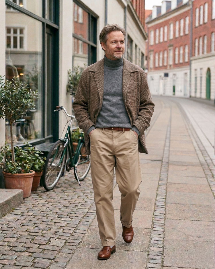 Min kammesjuk kombinerede den med chinos, penny loafers og grå rullekrave – som jeg havde bedt om.